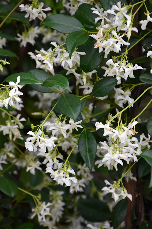 Confederate Star-Jasmine will grow to be about 20 feet tall at maturity, with a spread of 24 inches. As a climbing vine, it should either be planted near a fence, trellis or other landscape structure where it can be trained to grow upwards on it, or allowed to trail off a retaining wall or slope. Although it's not a true annual, this slow-growing plant can be expected to behave as an annual in our climate if left outdoors over the winter, usually needing replacement the following year. As such, gardeners should take into consideration that it will perform differently than it would in its native habitat.