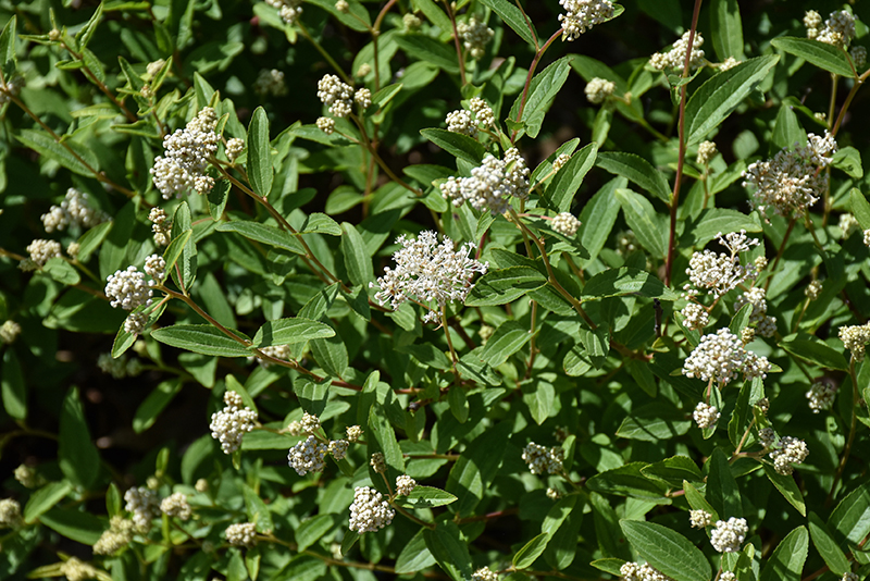 A dense, rounded shrub with bright green shiny foliage; a prolific bloomer, covered in clusters of fragrant white flowers from mid-spring to early summer; perfect for borders and rock gardens; very hardy and drought tolerant once established